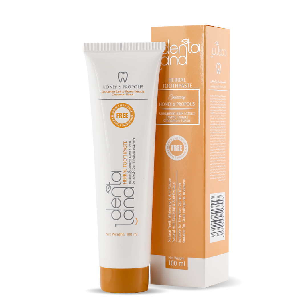 خمیردندان گیاهی دنتالند (طعم دارچین) با ارائه فرمولاسیونی جدید برپایه عسل، بره موم و منابع گیاهی ضمن برطرف نمودن تمام نیازهای مربوط به بهداشت دهان و دندان اعم از کاهش پوسیدگی و جرم، سفیدکنندگی طبیعی، کاهش التهاب، خونریزی و حساسیت لثههای حساس، با حفظ و افزایش رطوبت دهان از فعالیت باکتریها و ایجاد بوی نامطبوع هم جلوگیری مینماید. علاوه بر این در طراحی و فرمولاسیون خمیردندان گیاهی دنتالند مجموعهای از عصارههای طبیعی گیاهی مختلف همچون ژل آلوئه ورا، عصارههای دارچین، آویشن، گل صابونی، چوب مسواک، استویا، هل سبز، شیرین بیان، زنجبیل با ویژگی های اثبات شدهای مانند کف کنندگی طبیعی، سایندگی طبیعی، آنتی باکتریال، کاهش دهنده التهاب و درد و شیرین گنندگی طبیعی استفاده شده که باعث حفظ بهداشت دهان و دندان میشوند. این خمیردندان زیست تخریبپذیر گیاهی با حذف فلوراید، عامل کفکننده سنتزی، رنگ ، نگهدارنده، اسانس، و شیرین کننده مصنوعی و جایگزینی با عصاره های گیاهی مختلف علاوه بر حفظ بهداشت دهان و دندان، تلاش زیادی در جهت حفظ سلامت عمومی افراد و همچنین محیط زیست داشته و محصول نهایی را به یک فرآورده فراسودمند تبدیل نموده است. خمیردندان گیاهی حاوی عصارههای دارچین و آویشن دارای خواص آنتی باکتریال و آنتی اکسیدان طبیعی بوده و مناسب لثه و دندان های حساس و تسکین عفونت های لثه و دندان میباشد.
