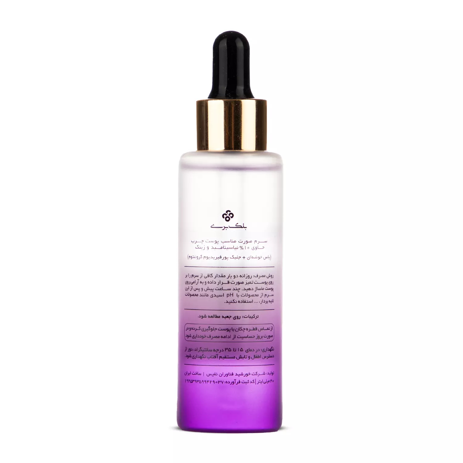 چرب شدن زیاد پوست پدیده‌ای است که قشر وسیعی از افراد را به ویژه بعد از سن بلوغ درگیر کرده و موجب ناراحتی آن‌ها می‌شود. سبوم مازاد روی پوست موجب برق زدن پوست شده و یکی از عوامل تاثیرگذار در ایجاد آکنه در صورت است. یکی از ترکیبات بسیار موثر و شناخته شده برای کمک به کنترل مشکلات پوست چرب، نیاسینامید است که از جنبه‌های مختلف شرایط پوست چرب را بهبود می‌دهد. سرم مناسب پوست چرب بلک‌بری علاوه بر نیاسینامید، زینک، پپتید و عصاره‌های متنوع گیاهی، از جمله عصاره سلول‌های بنیادی، را نیز در خود دارد که درکنار یکدیگر یک محصول ایده‌آل و بسیار کاربردی برای مدیریت پوست چرب را تشکیل داده‌اند